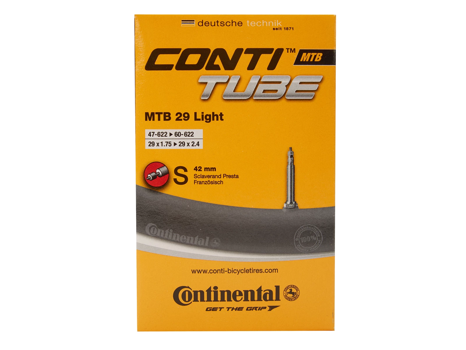 Här får du en läcker Continental cykelslang speciellt utvecklad för användning på MTB-cyklar med 29 ”hjul eller på klassiska breda däck. Slangen har en 42 mm tävlingsventil och har i denna lätta version varit 75 gram lättare än Continental standard MTB 29-slang, vilket innebär att du kan springa snabbare, men å andra sidan har du en något högre risk för punktering, medan slangen måste pumpas oftare.